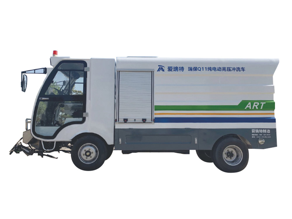 Ruibao Q11 pure electric high-pressure washing is mainly used for washing and maintenance of motorways, non motorways, sidewalks, back streets and alleys, municipal gardens, property communities and other roads. The lower left and right side flushing can be combined with the sweeper. The front high-pressure flushing and multi angle flushing device is used to clean the dirt at the road surface, road kerbs and traffic sign lines. The rear washing cart, washing site and high-pressure water gun can wash and maintain the sections where vehicles are inconvenient to stop.