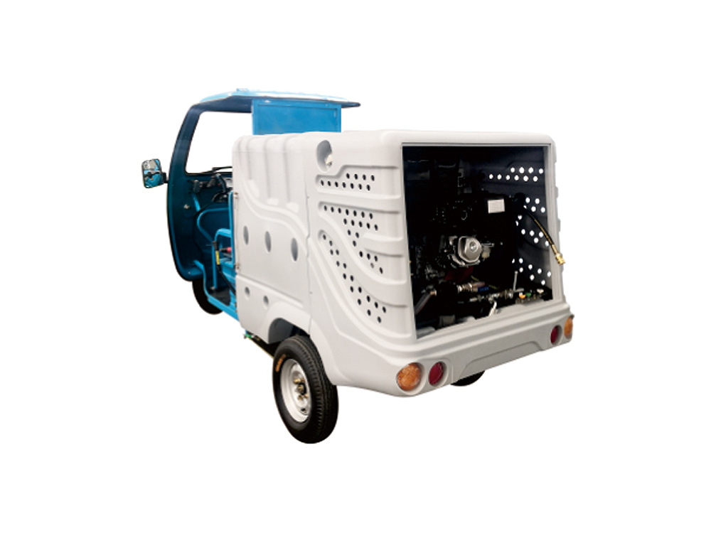 Ruibao Q4 pure electric high-pressure washing car wash is mainly used for the washing and maintenance of sidewalks, non motorized lanes, back streets and alleys, municipal gardens, property communities and other roads. It can be combined with floor sweepers. The rear high-pressure water gun can wash fruit suitcases, garbage cans, small advertisements, etc.