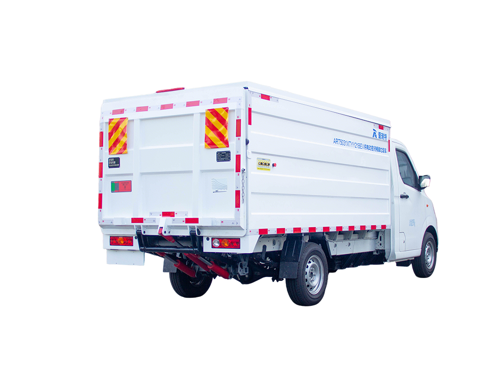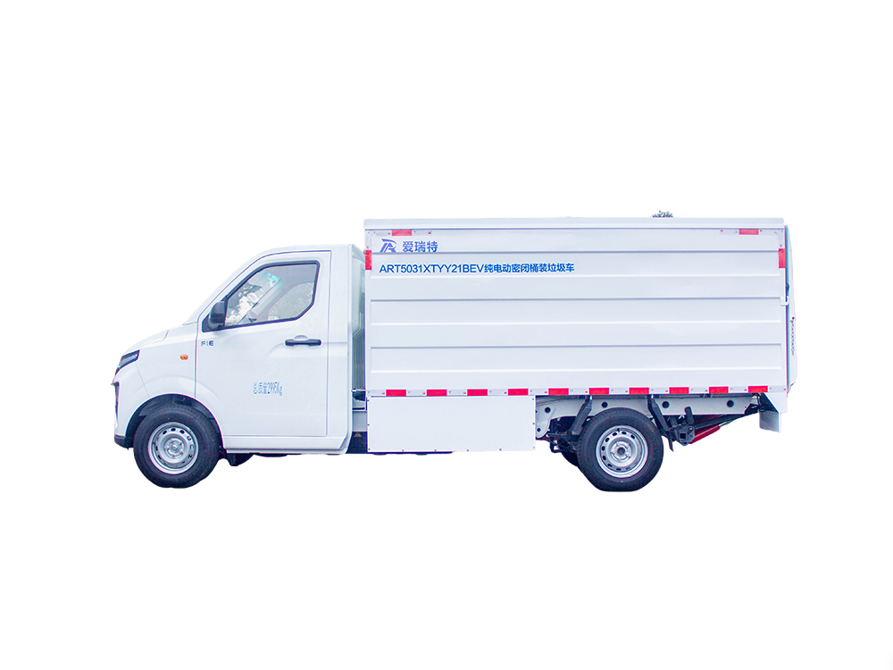 ART5031XTYY21BEV純電動密閉式桶裝垃圾車是一種擁有密封式垃圾箱采用液壓尾板升降機構(gòu)收運垃圾桶的垃圾桶駁運車,適用于收運放置于城市生活小區(qū)或街道兩側(cè)的標準塑料垃圾桶(240L/660L)。