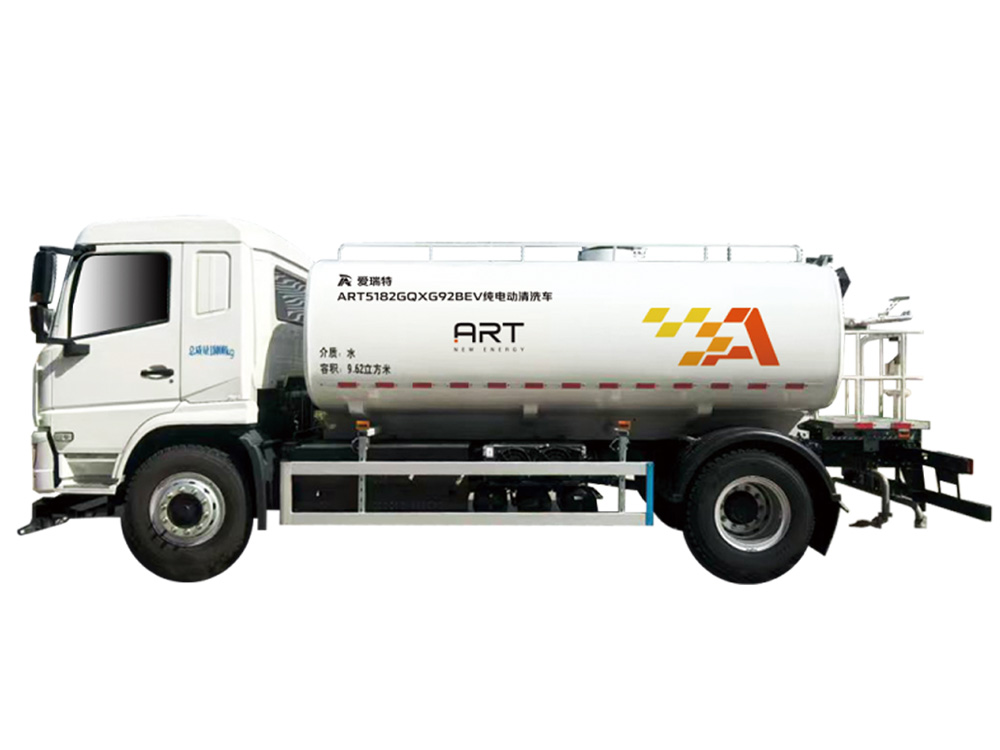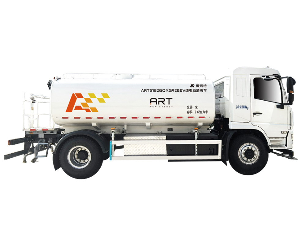 ART5182GQXG92BEV純電動清洗車是一種具有獨立的高、低壓兩套水路系統,采用直流電機驅動高壓水泵及工作裝置、取力器驅動低壓水泵,高壓清洗和低壓噴灑作業純電動清洗車。